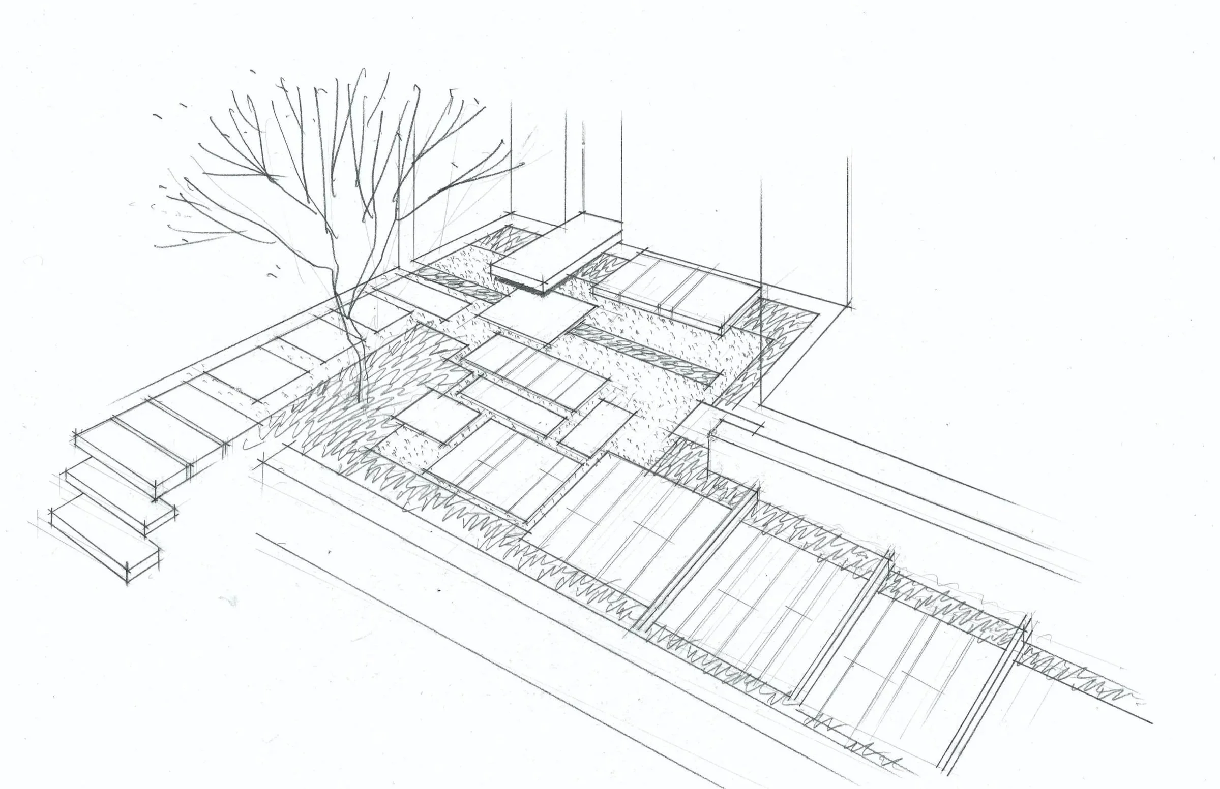 Marcel Breuer’s Wassily chair remains one of the most recognizable objects of the modern furniture movement and is still in production nearly a century later. Breuer’s architectural language scaled effortlessly. From the sculptural gravitas of the Whitney Museum in New York City to the commanding presence of the Campus Center University of Massachusetts Amherst. Breuer became deeply embedded in New England’s intellectual and cultural landscape. He introduced a distinctly modern home to Andover. Defined by clean geometry, honest materials and a disciplined sense of structure. The surrounding landscape, originally shaped by Dan Kiley, extended that clarity into the terrain. Our role was to honor the home’s modernist roots while shaping a setting that aligns with how the homeowner lives today.